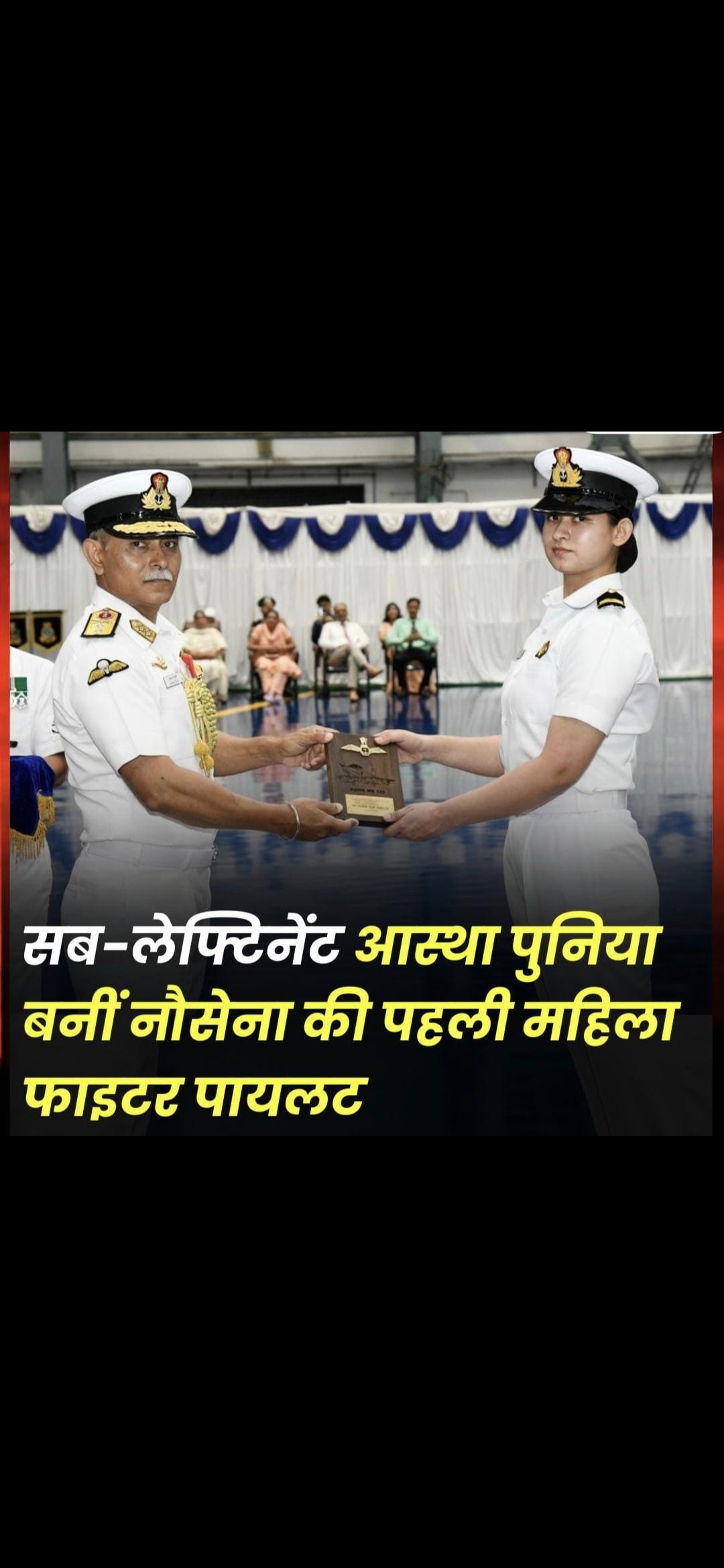 भारतीय नौसेना में पहली बार कोई महिला फाइटर पायलट बनी है. सब-लेफ्टिनेंट आस्था पुनिया नौसेना को फाइटर पायलट बनाया गया...