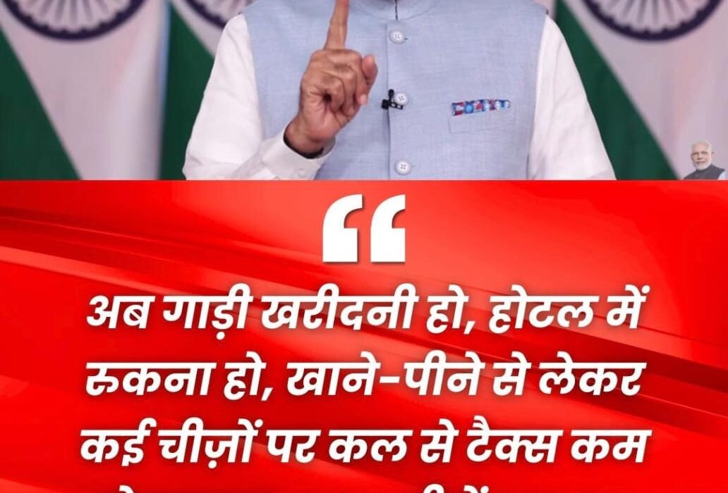 अब गाड़ी खरीदनी हो, होटल में रुकना हो, खाने-पीने से लेकर कई चीज़ों पर कल से टैक्स कम हो जाएगा, 99% चीजें अब 5% टैक्स के दायरे में आ जाएंगी-PM नरेंद्र मोदी