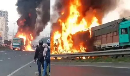 पुणे में नवले ब्रिज पर भीषण हादसा: कई गाड़ियां आपस में टकराने के बाद लगी आग, कई लोगों की मौत