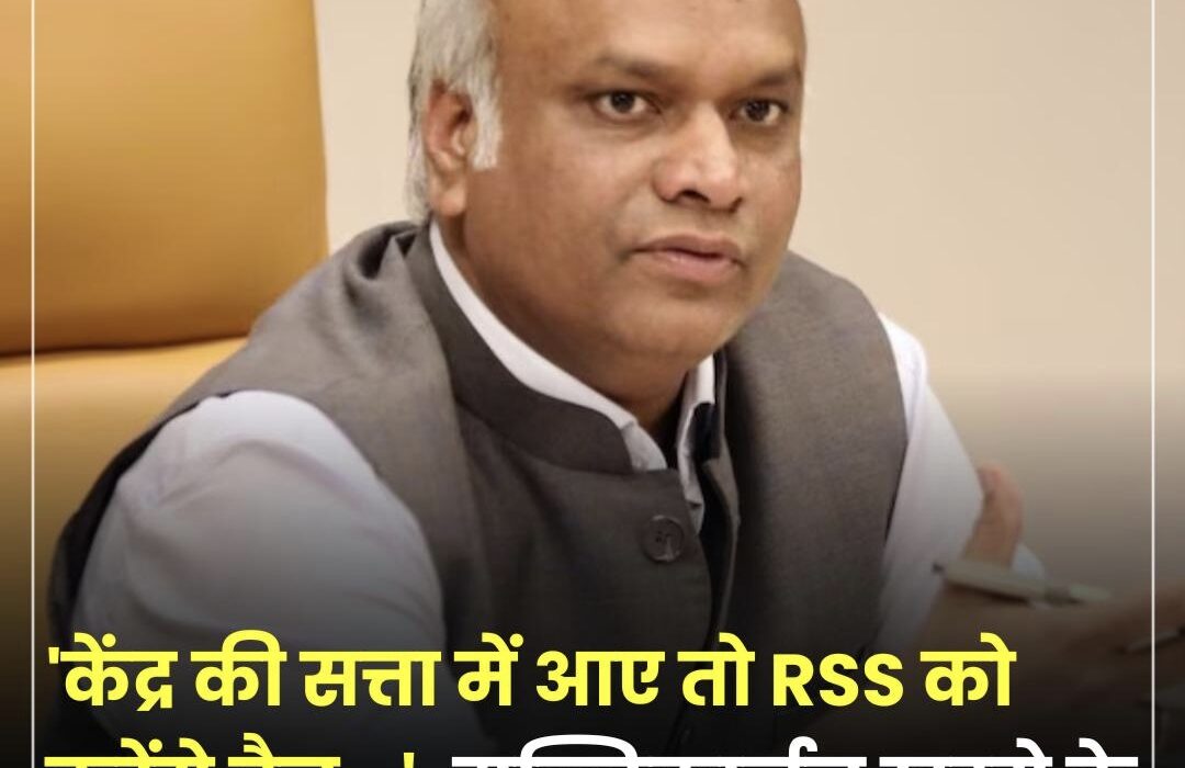 कांग्रेस अध्यक्ष मल्लिकार्जुन खड़गे के बेटे और कर्नाटक सरकार में मंत्री प्रियांक खड़गे ने ऐलान किया है कि अगर कांग्रेस फिर से केंद्र की सत्ता में आती है तो राष्ट्रीय स्वयंसेवक संघ यानी RSS को देशभर में बैन किया जाएगा. कांग्रेस के वरिष्ठ नेता और लोकसभा में नेता प्रतिपक्ष राहुल गांधी लगातार RSS की आलोचना करते रहे है और संगठन पर देश को बांटने के आरोप लगा चुके लेकिन प्रियांक खड़गे ने RSS पर राष्ट्रव्यापी प्रतिबंध की बात कहकर एक नई बहस शुरू करदी है.