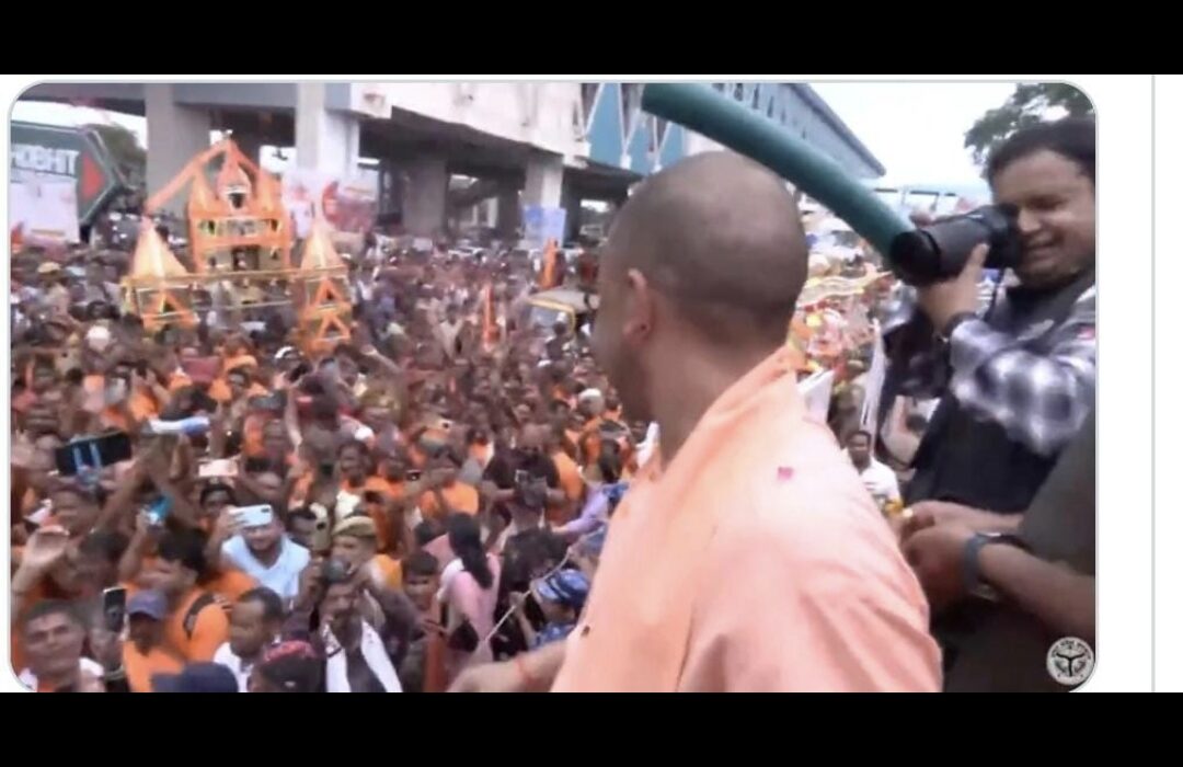 मेरठ में CM योगी ने मंच से कांवड़ियों पर की पुष्पवर्षा, उपद्रवियों को दी सख्त चेतावनी