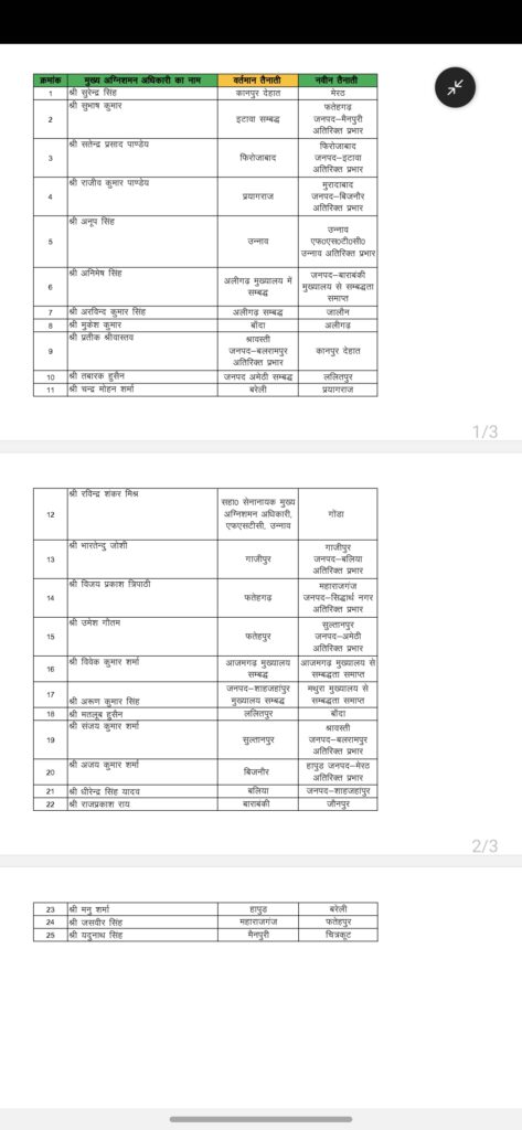 लखनऊ : UP के कई जिलों के मुख्य अग्निशमन अधिकारियों (CFO) का शासन ने किया तबादला