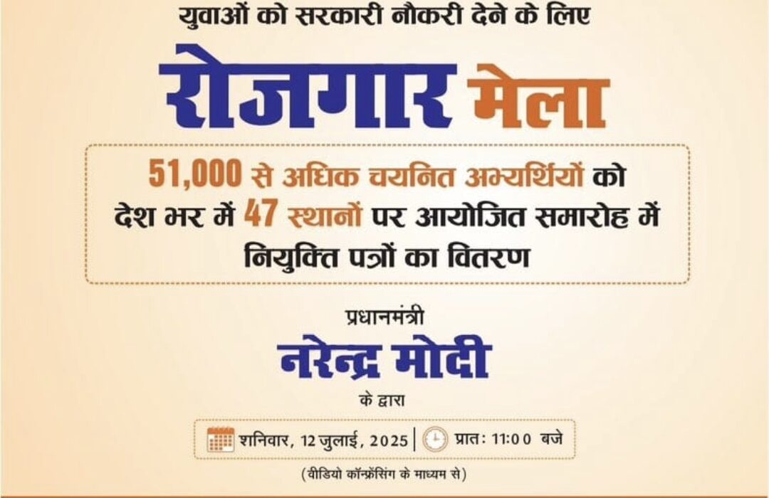 युवाओं को रोजगार प्रदान करने की दिशा में एक और महत्वपूर्ण कदम उठाते हुए प्रधानमंत्री नरेंद्र मोदी शनिवार को देशभर के 47 स्थानों पर आयोजित रोजगार मेलों के तहत 51 हजार से अधिक नवनियुक्त कर्मचारियों को नियुक्ति पत्र सौंपेंगे. रांची में यह कार्यक्रम CCL कन्वेंशन सेंटर (दरभंगा हाउस) में आयोजित किया जा रहा है, जहां 13 विभिन्न सरकारी विभागों द्वारा चयनित अभ्यर्थियों को औ ऐप खोलें रूप से नियुक्ति पत्र प्रदान हो जाएंगे।