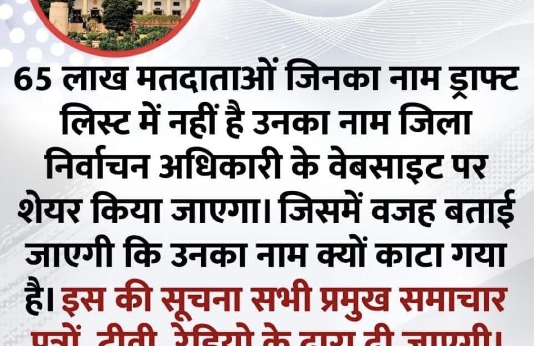 सुप्रीम कोर्ट का निर्वाचन आयोग को बड़ा निर्देश, 65 लाख हटाए गए मतदाताओं की सूची वेबसाइट और BLO कार्यालयों पर प्रकाशित करने का आदेश