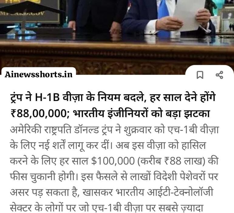ट्रंप ने H-1B वीज़ा के नियम बदले, हर साल देने होंगे ₹88,00,000; भारतीय इंजीनियरों को बड़ा झटका